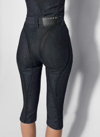 black mesh raw denim capri jeans