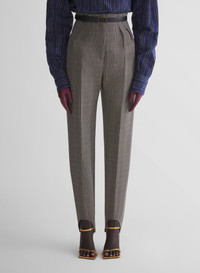 - Tapered tailored pants in houndstooth check - Pleated high waist - Hidden hook and zip closure - Side-seam pockets - Pressed-creases - Elasticated stirrups - Fully lined - Model is 180 cm / 5'11" and is wearing a size 36 DETAILS LINING:100% COTTON MAIN FABRIC:100% WOOL made in BULGARIA style: 26P1PA05311024