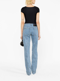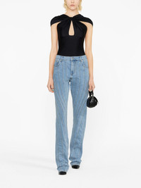 Snow Spiral straight-leg jeans Mugler is lauded for its sculpted silhouettes. A case in point, these straight-leg jeans are crafted from blue denim and enhanced with the brand’s signature spiral seams that subtly highlight the body's natural contours. Highlights - Blue - Stretch-cotton - Denim - Multi-seam spiral construction - Low-rise - Belt loops - Front button and zip fastening - Classic five pockets - Baggy cut - Straight leg Made in Italy Composition Cotton 72%, Elastomultiester 28% SIZE & FIT Model measurements Height 5 ft 10 in(1.79 m) Bust/Chest 31.49 in(80 cm) Hips 35.03 in(89 cm) Waist 23.62 in(60 cm) Measurement FRONT RISE 12.2 in(31 cm) INSIDE LEG 37.4 in(95 cm) HIPS 37.79 in(96 cm) WAIST 29.92 in(76 cm) FittingInformation Designed for a tapered fit, these jeans allow a close fit at the waist and a loose unrestricted fit over the leg with a closer fit towards the ankle Constructed from stretch denim, this piece offers a stretch fit with durability This piece fits true to size – take your usual size
