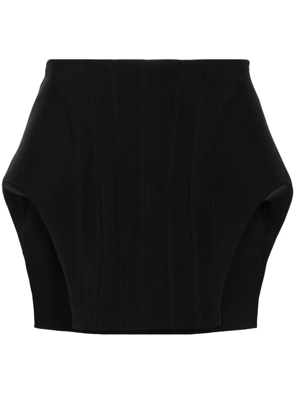 corset-inspired mini skirt Highlights - Black - Cotton blend - Twill weave - Corset-inspired style - Cut-out detailing - Internal logo tag - Thigh-length - Curved hem - Concealed rear zip fastening - Internal press-stud fastening Imported Composition Outer: Polyamide 78%, Viscose 76%, Wool 24%, Elastane 22% Lining: Cotton 95%, Elastane 5% SIZE & FIT Model measurements Height 5 ft 10 in(1.77 m) Bust/Chest 33.07 in(84 cm) Hips 37 in(94 cm) Waist 24.8 in(63 cm) FittingInformation This mini-length skirt is intended to be worn just below the waist Slightly short in length; consider your own measurements Made from a midweight fabric This piece fits true to size – take your usual size