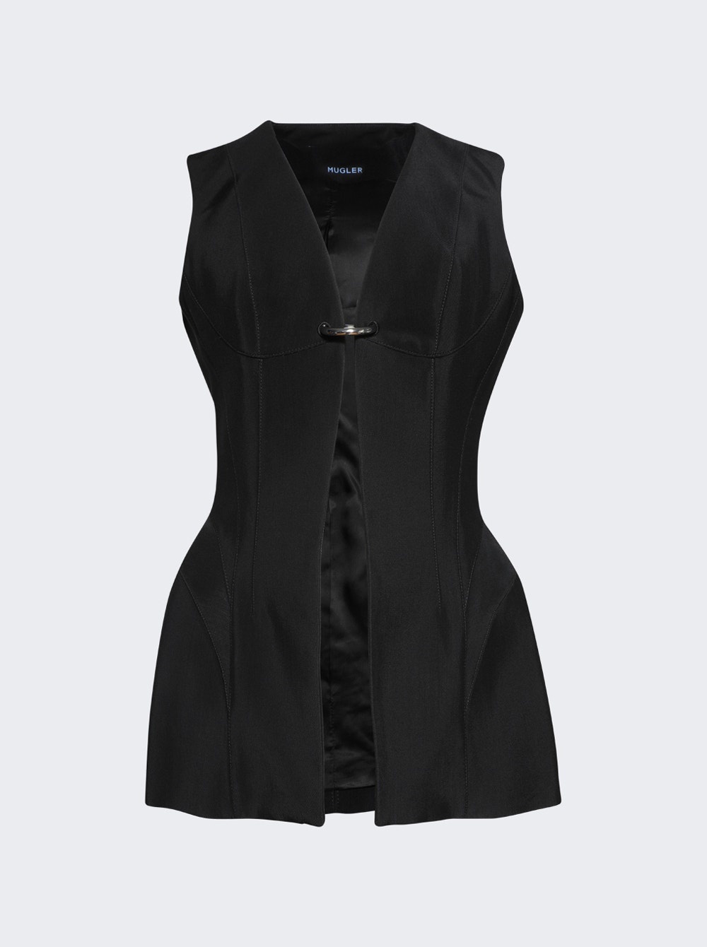 Details - Open v-neckline - Silver piercing buckle - Padded hips - Straight hem Brand Style: 24F1VE0343182 Designer/Brand: MUGLER