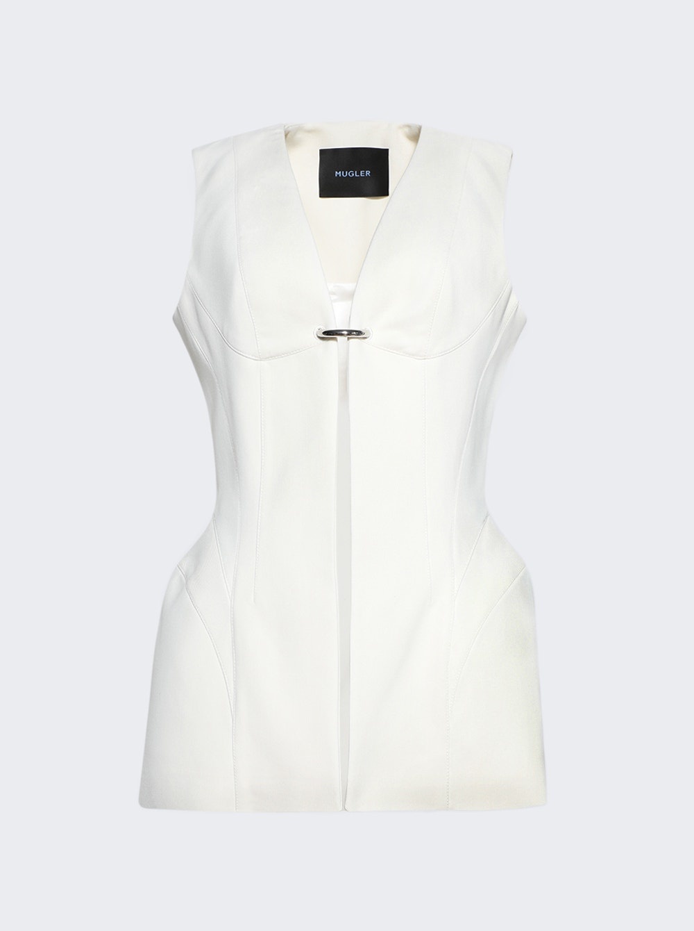 Details - Open v-neckline - Silver piercing buckle - Padded hips - Straight hem Brand Style: 24F1VE0343182 Designer/Brand: MUGLER