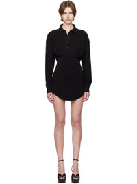 Cotton pique minidress. · Paneled construction · Rib-knit spread collar and cuffs · Four-button placket · Darts at waist · Shirttail hem Supplier color: Black 100% cotton. Made in Portugal 251345F052004