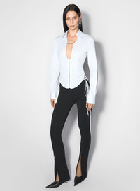 - Fitted shirt - Classic collar - Deep v-neck - Long sleeves - Front zip closure - Lace-up detailing at the sides DETAILS 78% ORGANIC COTTON 18% POLYAMIDE 4% ELASTANE MADE IN PORTUGAL STYLE: 25P1TO07642010