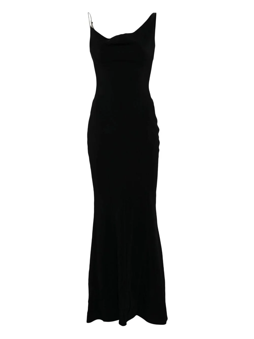 cowl-neck dress Highlights - Black - Cowl neck - Slim fit - Spaghetti straps - Sleeveless Imported Composition Viscose 96%, Lycra 4% Washing instructions Read Manufacturer Guidelines