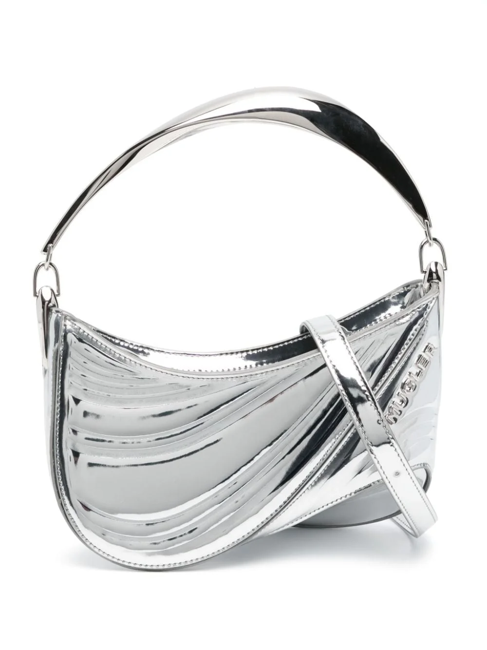 Spiral Curve 01 shoulder bag Highlights - Silver-tone - Calf leather - Foiled finish - Curve-edge body - Single metallic top handle - Adjustable detachable shoulder strap - Silver-tone logo lettering - Main compartment - Internal card slots - Internal logo stamp - Full lining - Top zip fastening Made in Italy Composition Outer: Metal 100%, Calf Leather 100% SIZE & FIT Model measurements Height 5 ft 10 in(1.77 m) Bust/Chest 33.85 in(86 cm) Hips 34.64 in(88 cm) Waist 24.01 in(61 cm) Measurement DEPTH 3.54 in(9 cm) HANDLE 4.72 in(12 cm) HEIGHT 4.72 in(12 cm) STRAP 38.58 in(98 cm) WIDTH 8.66 in(22 cm)