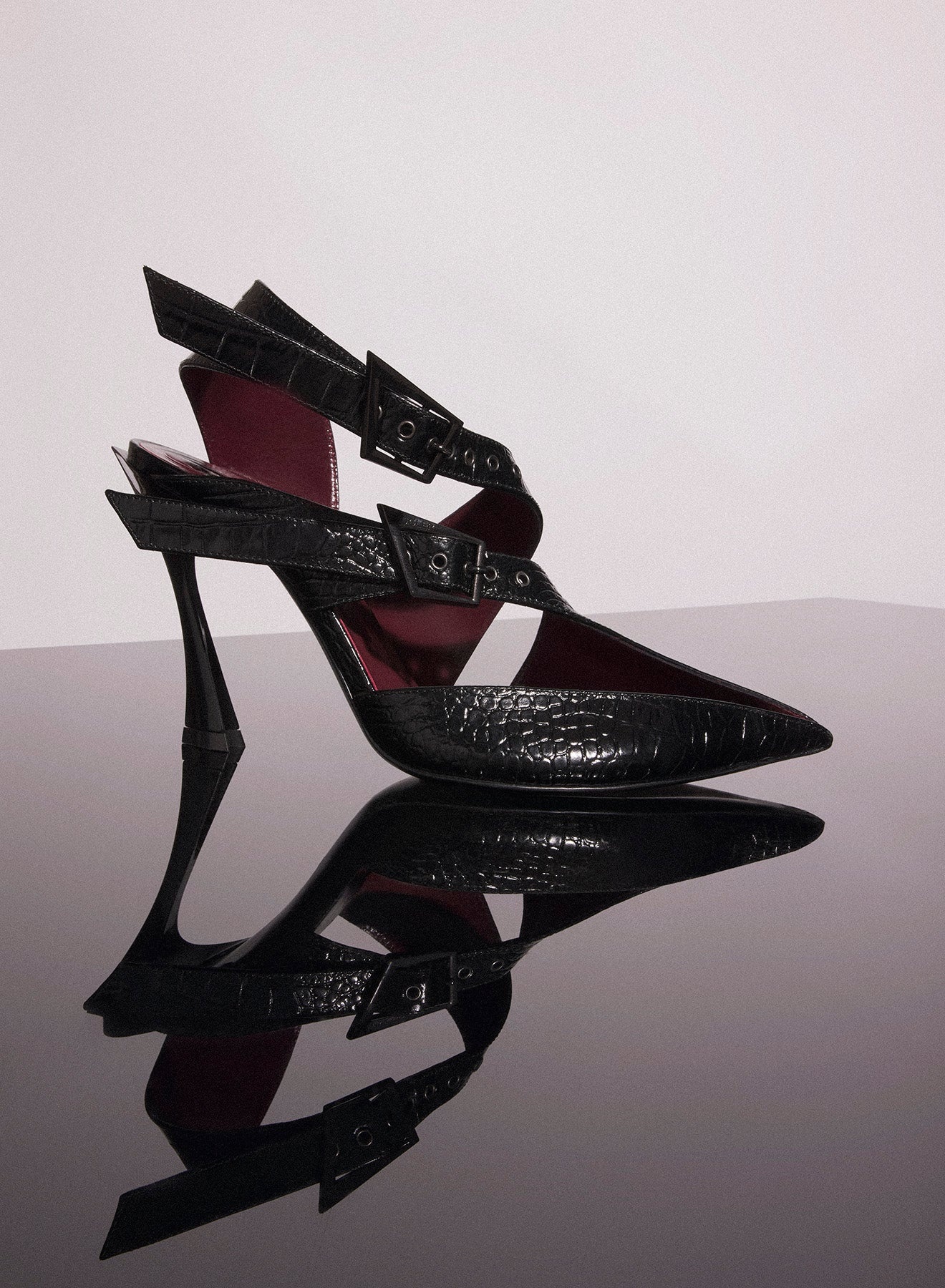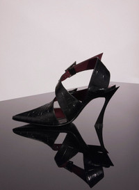 - Italian craftmanship - pointy toe - high stiletto Fang 95mm (3.7 inches) heel - slip-on desgin - two adjustable buckles - italian leather sole DETAILS 100% goat leather - capra ircus - India Farm Made in Italy Style: 24W10CH00249020