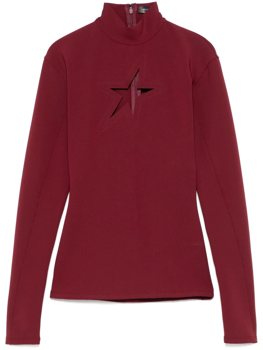 cut-out star top Highlights - Bordeaux red - Stretch-design - Soft scuba jersey - Cut-out star detailing to the front - Concealed rear zip fastening - High neck - Long sleeves - Straight hem Imported Composition Polyamide 75%, Elastane 25% SIZE & FIT Model measurements Height 5 ft 10 in(1.78 m) Bust/Chest 33.85 in(86 cm) Hips 36.61 in(93 cm) Waist 26.77 in(68 cm) FittingInformation Designed for a close fit throughout Made from a midweight stretch fabric, this piece offers elasticity and flexibility when worn