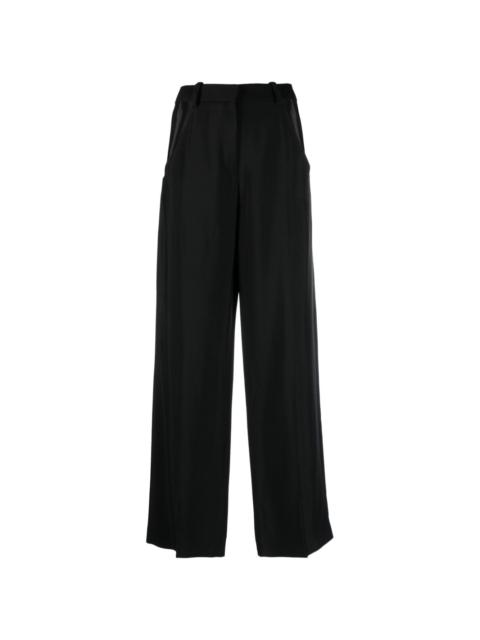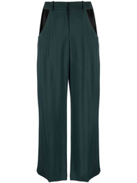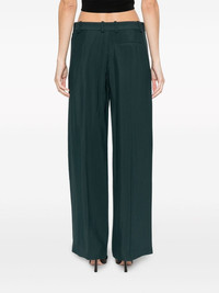cut-out wide-leg trousers Mugler’s contoured approach carries through to its tailoring lineup, as demonstrated with these green trousers. They’re cut to a classic wide-leg and punctuated with geometric cut-outs at each side. Highlights - Dark green - Crepe texture - Cut-out detailing - Belt loops - Concealed front fastening - Rear jetted pocket - Wide leg Imported Composition Outer: Viscose 76%, Virgin Wool 24% Lining: Cupro 100% SIZE & FIT Model measurements Height 5 ft 11 in(1.8 m) Bust/Chest 31.49 in(80 cm) Hips 36.22 in(92 cm) Waist 25.59 in(65 cm) Measurement INSIDE LEG 32.28 in(82 cm) FRONT RISE 12.59 in(32 cm) LEG OPENING 22.83 in(58 cm) WAIST 32.67 in(83 cm) HIPS 39.56 in(100.5 cm) FittingInformation Designed for a straight-leg fit, these trousers allow for a close fit at the waist and an unrestricted, comfortable fit over the leg The partially elasticated waistband offers increased movement and comfort at the waist Made from a midweight non-stretch fabric This piece fits true to size – take your usual size
