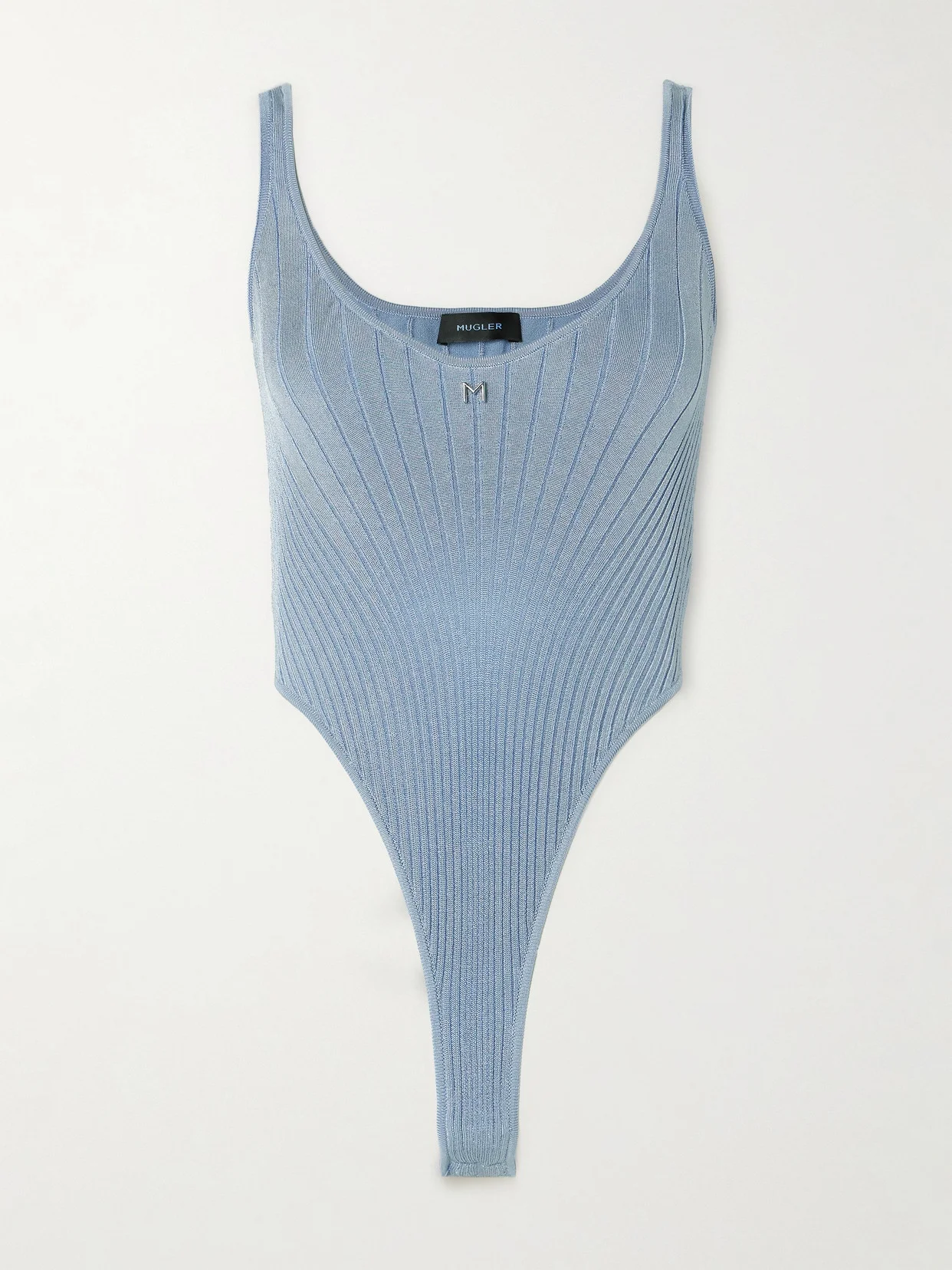 Those in the know will instantly recognize Mugler's bodysuit as the brand's own. It's made from stretch-knit with contoured ribbed seams that highlight your curves and has high-cut legs. Style yours with leather pants or jeans.