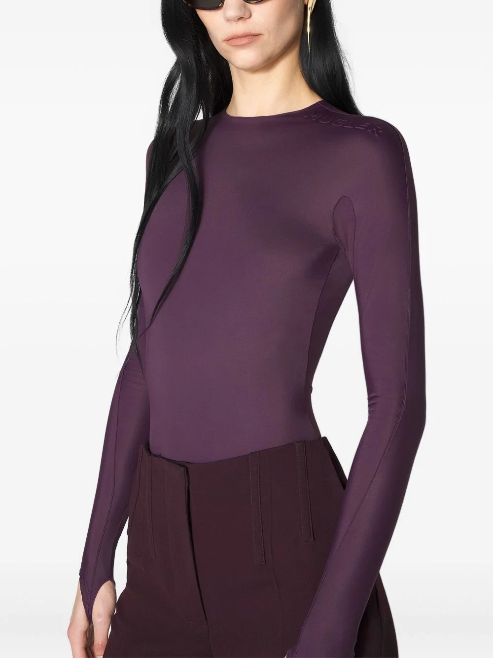 embossed-logo long-sleeve bodysuit Highlights - Dark purple - Long sleeves - Round neck - Embossed logo - Thumbholes - Just a reminder that this piece must be tried on over your own garments. Imported Composition Cotton 95%, Elastane 5% Washing instructions Read Manufacturer Guidelines