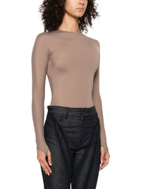 embossed long-sleeve bodysuit Highlights - Brown - Long sleeves - High neck - Embossed lettering - Just a reminder that this piece must be tried on over your own garments. Imported Composition Lining: Cotton 95%, Elastane 5% Outer: Recycled Polyamide 78%, Elastane 22% SIZE & FIT Model measurements Height 5 ft 10 in(1.79 m) Bust/Chest 31.88 in(81 cm) Hips 35.43 in(90 cm) Waist 23.62 in(60 cm) Washing instructions Machine Wash