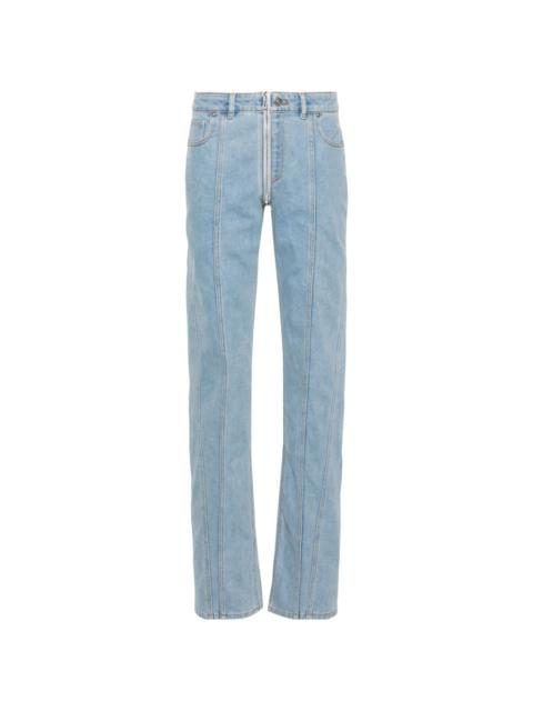 straight-leg jeans Highlights - Light blue - Stretch-cotton - Washed denim - Panelled design - Contrast stitching - Belt loops - Classic five pockets - Logo patch to the rear - Straight leg - Front zip fastening Imported Composition Cotton 72%, Elastomultiester 28% SIZE & FIT Model measurements Height 5 ft 11 in(1.8 m) Bust/Chest 31.1 in(79 cm) Hips 35.03 in(89 cm) Waist 24.8 in(63 cm) FittingInformation Designed for a straight-leg fit, these jeans allow for a close fit at the waist and an unrestricted and comfortable fit over the leg Constructed from stretch denim, this piece offers a stretch fit with durability This piece fits true to size – take your usual size