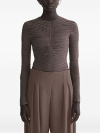 gathered long-sleeve T-shirt Highlights - Brown - Gathered detail - Long sleeves - Crew-neck - Mesh fabric Imported Composition Lining: Cotton 95%, Elastane 5% Outer: Recycled Polyamide 94%, Elastane 6% Washing instructions Read Manufacturer Guidelines