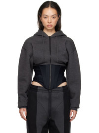 Organic cotton fleece and jersey hoodie. · Paneled construction · Drawstring at hood · Zip closure · Boning at curved corset-style hem · Dropped shoulders · Rib-knit cuffs · Twin pleats at back · Logo-engraved graphic black hardware Supplier color: Charcoal/Black 100% organic cotton. Made in Portugal 242345F097000