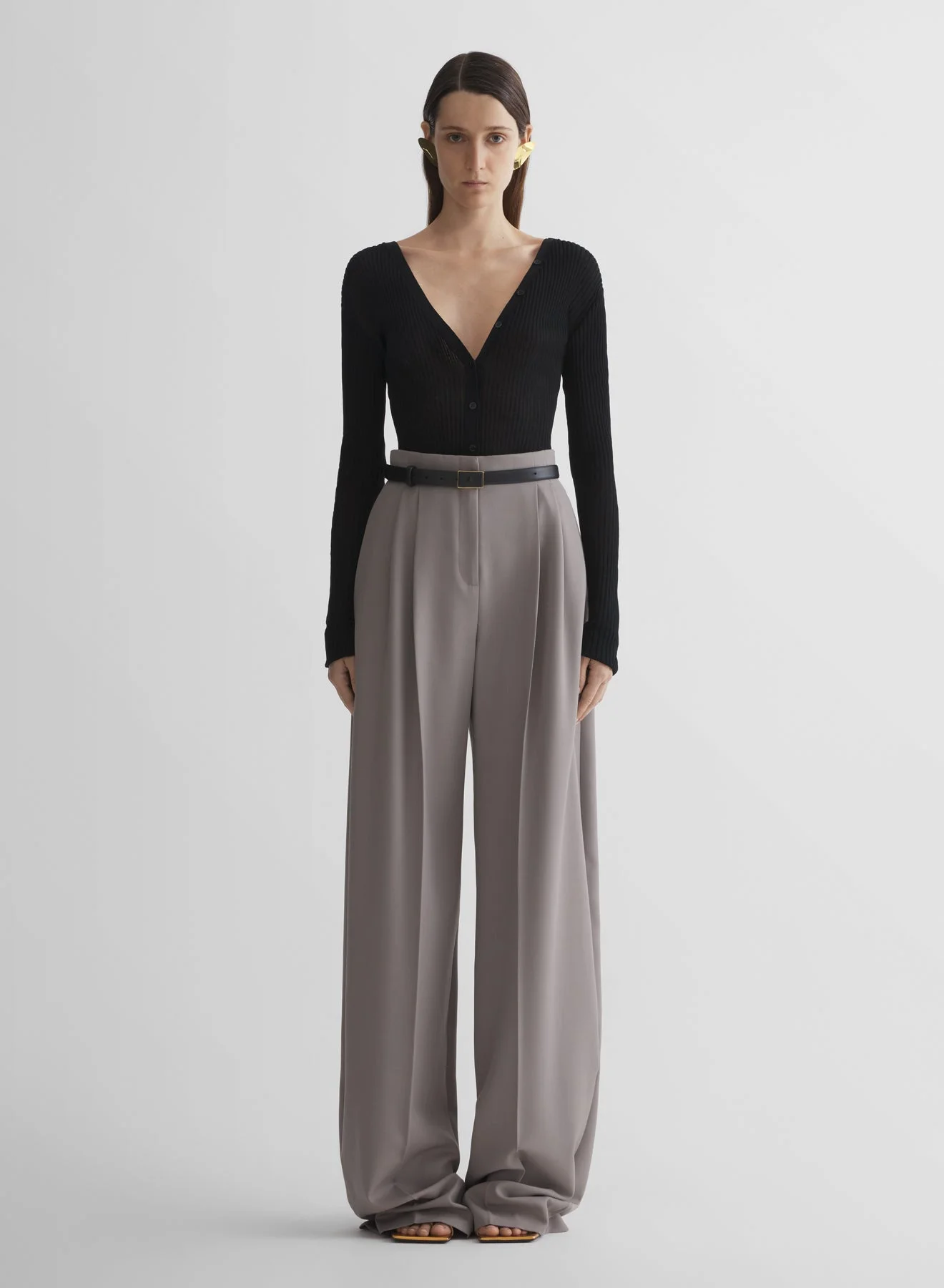 grey wide pleated trousers