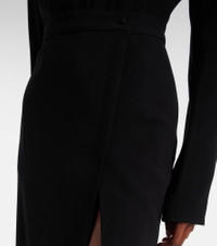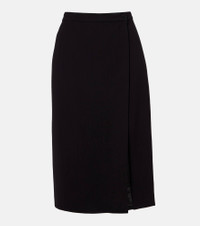 Best known for its sculptural styles, the Parisian house of Mugler challenges conventional fashion design. This midi skirt is tailored to a wrap silhouette and features a high-rise waistline. Product Details - Material: 78% viscose, 22% wool - Care instructions: dry clean - Made in Ukraine - Designer color name: Black - Item color: black - Lining: 100% cupro - Closure: snap-buttoned sides - Hem: straight - Side slits - Item number: P01104884 Size & Fit - True to size - Non-stretchy fabric - High-waisted - The model seen in the picture is 178cm-5'10" and wearing a size FR 36