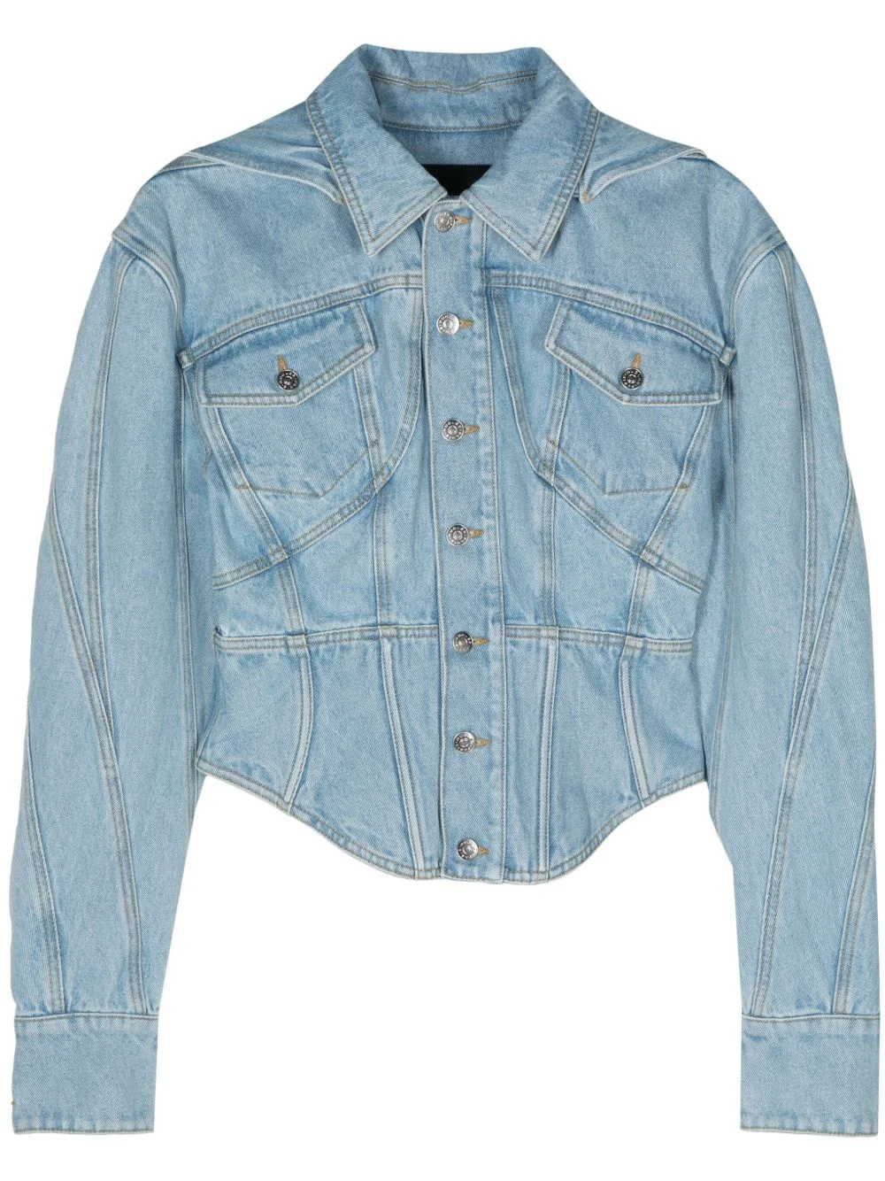 hooded denim jacket Highlights - Light blue - Organic cotton - Washed denim - Contrast stitching - Panelled design - Spread collar - Detachable oversize hood - Two chest flap pockets - Long sleeves with buttoned cuffs - Fitted waistline - Curved hem - Unlined - Logo-embossed buttons - Front button fastening Made in Italy Composition Organic Cotton 100%
