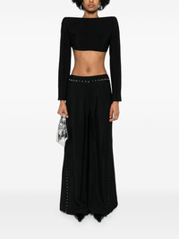 Hook & Eye wide-leg trousers Highlights - Black - Twill weave - Decorative hook and eye fastening - Two diagonal pockets to the sides - Pressed crease - Rear dart detailing - Rear welt pocket - Wide leg - Concealed front button, hook and zip fastening Imported Composition Outer: Viscose 76%, Virgin Wool 24% Lining: Cupro 100% SIZE & FIT Model measurements Height 5 ft 10 in(1.77 m) Bust/Chest 33.07 in(84 cm) Hips 37 in(94 cm) Waist 24.8 in(63 cm) FittingInformation Designed with a wide-leg cut, these trousers allow for a close fit at the waist and offer a loose and roomy fit over the leg Made from a heavyweight non-stretch fabric This piece fits true to size – take your usual size