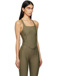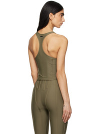 Stretch recycled nylon jersey tank top. · Scoop neck · Boning at front waist · Curved hem · Racer back · Logo plaque at back collar Supplier color: Khaki 78% recycled polyamide, 22% elastane. Made in Portugal 251345F111002