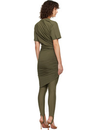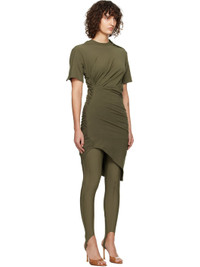 Stretch cotton jersey minidress. · Rib-knit crewneck · Hardware at shoulder · Ruching and draping at side seam · Asymmetrical hem Supplier color: Kaki 91% cotton, 9% elastane. Made in Portugal 251345F052002