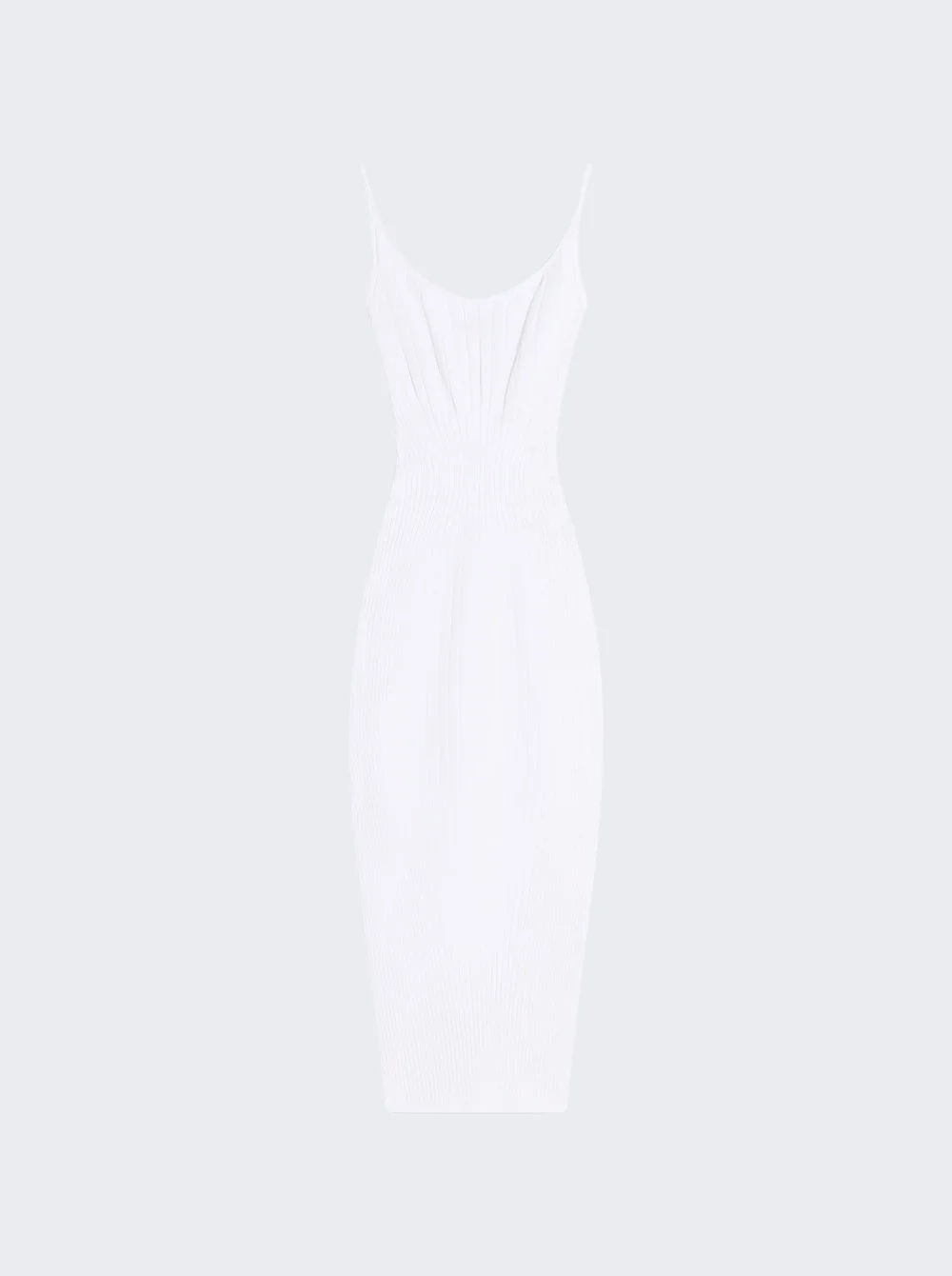 Details - Fitted silhouette - Midi length - Sleeveless - Thin straps - Ribbed knit - Care according to label - Material: 87% rayon, 11% nylon, 2% elastane Size Information: Vendor Color Code: Brand Style: 25F2RO16291128 Designer/Brand: MUGLER