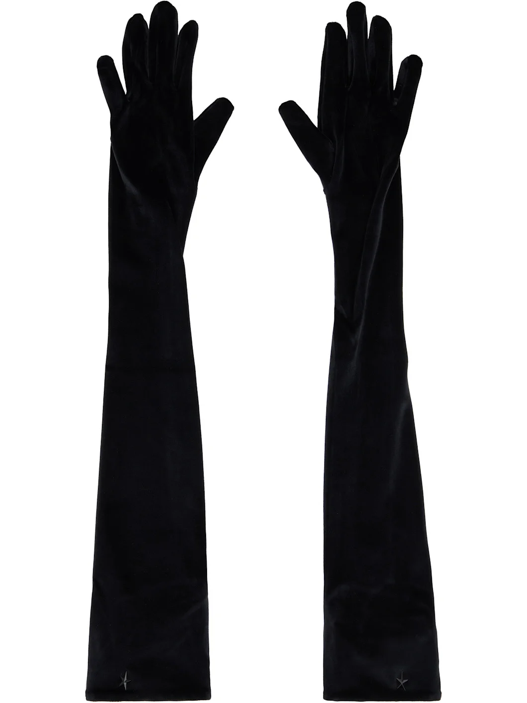 Pair of stretch velour long gloves. · Past elbow length · Logo hardware at cuffs Supplier color: Black 91% polyester, 9% elastane. Made in Bulgaria 252345F012001