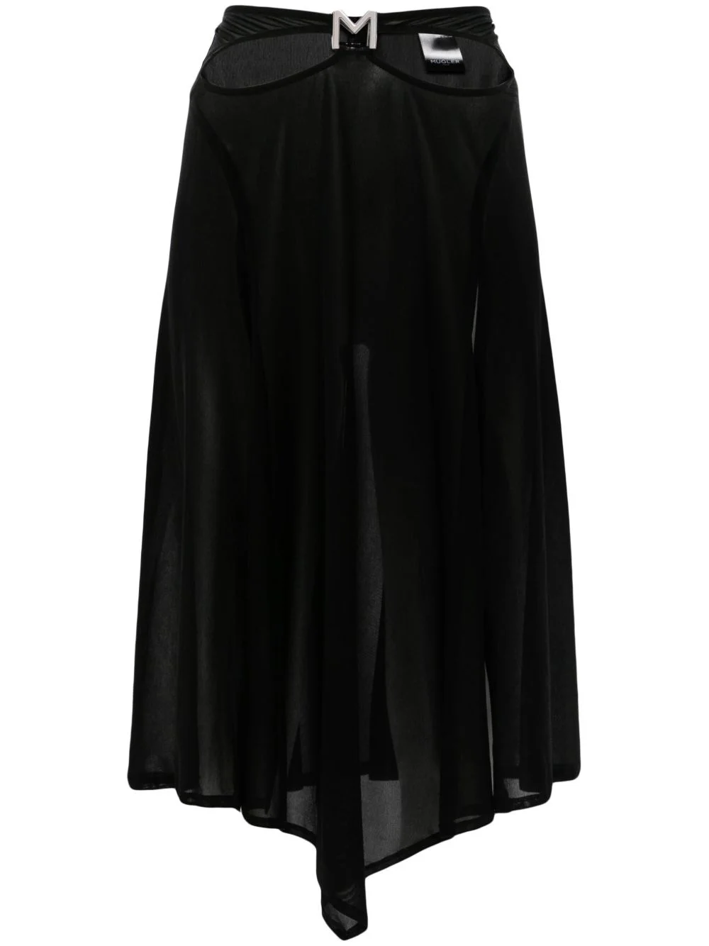 M cut-out midi skirt Highlights - Black - Stretch-design - Silver-tone logo plaque - Cut-out detailing - Mid-rise - Rear zip fastening - Flared skirt - Asymmetric hem - Mid-length Imported Composition Polyamide 90%, Elastane 10% Washing instructions Hand Wash