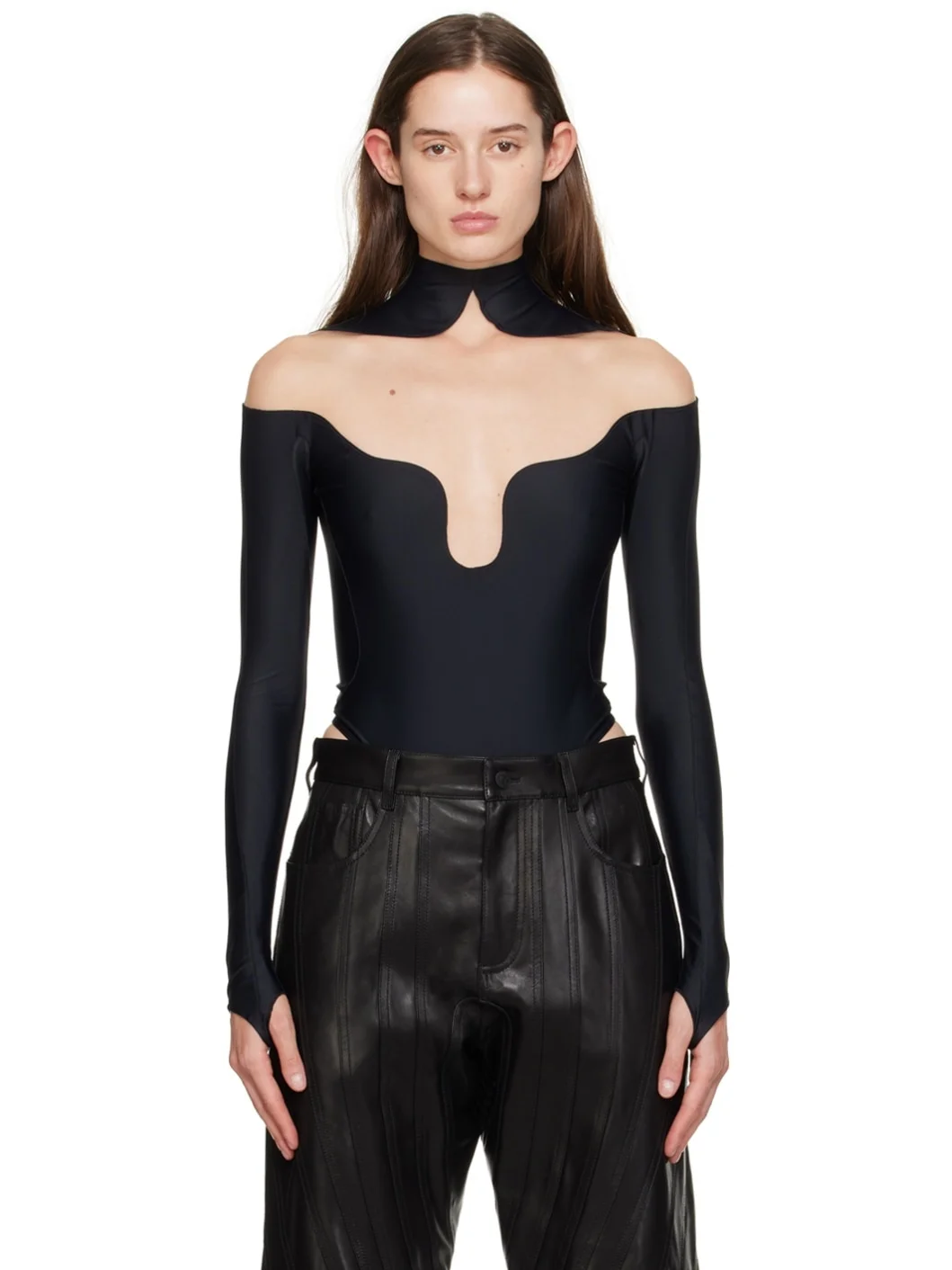 Stretch nylon jersey and tulle bodysuit. · Paneled construction · Mock neck · Silver-tone logo plaque at front · Press-stud fastening at bottom · Thumbhole at cuffs · Zip closure at back · Partial cotton jersey lining Supplier color: Black Body 1: 78% polyamide, 22% elastane. Body 2: 77% polyamide, 23% elastodiene. Lining: 100% cotton. Made in Portugal 241345F358017