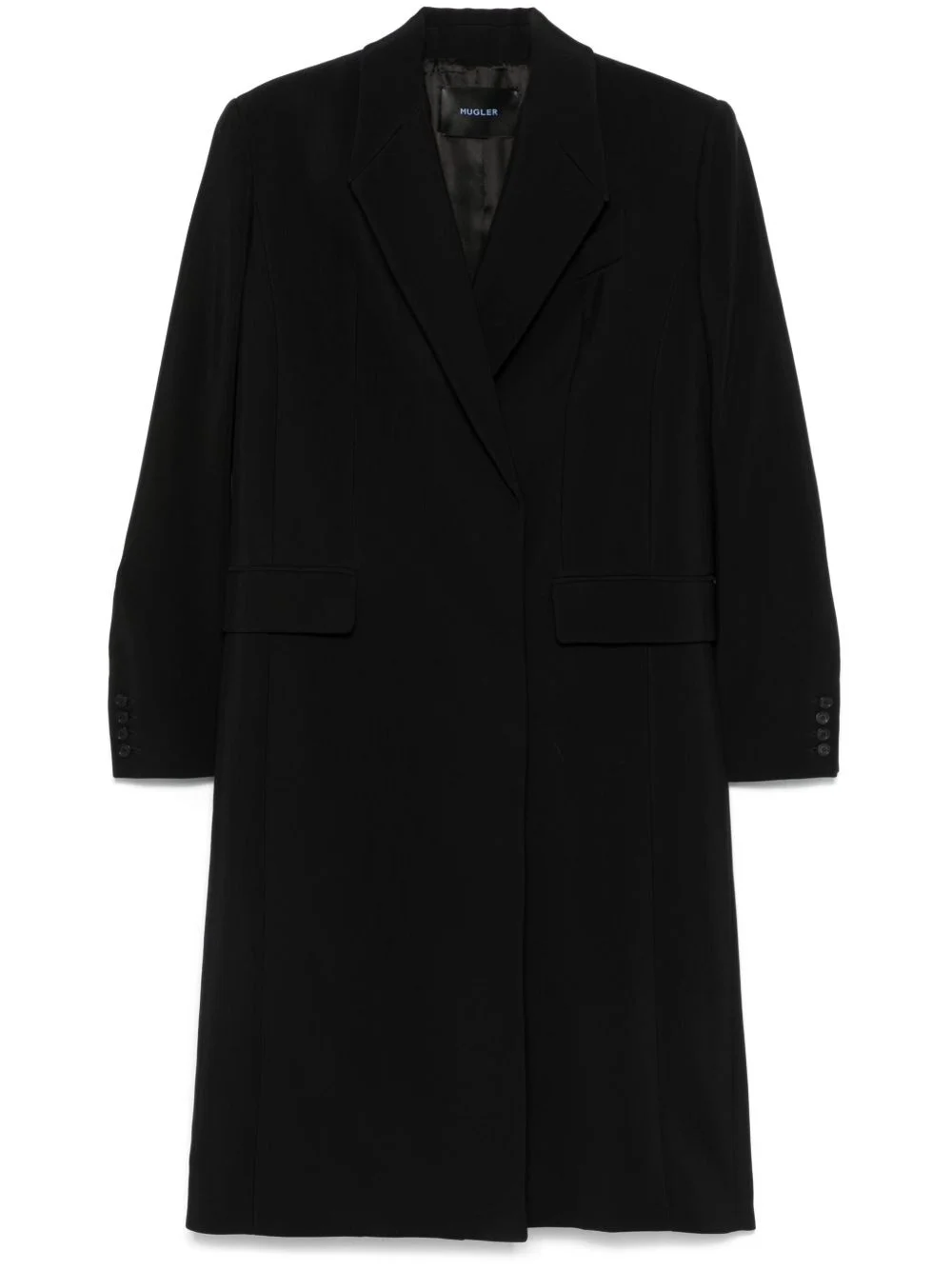 single-breasted coat Highlights - Black - Twill weave - Front button fastening - Inverted peak lapels - Shoulder pads - Long sleeves - Buttoned cuffs - Chest welt pocket - Two front flap pockets - Central rear vent - Full lining - Straight hem - Long length Imported Composition Lining: Cupro 100% Outer: Viscose 76%, Virgin Wool 24% SIZE & FIT Model measurements Height 5 ft 10 in(1.77 m) Bust/Chest 33.07 in(84 cm) Hips 37 in(94 cm) Waist 24.8 in(63 cm) FittingInformation Designed to be unstructured, offering a loose fit throughout The internal shoulder pads offer a structured shape Made from a midweight non-stretch fabric