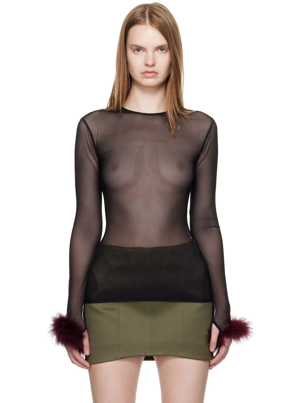 Stretch recycled mesh T-shirt. · Sheer · Crewneck · Faux-fur trim at cuffs Supplier color: Dark plum/Black 94% recycled polyamide, 6% elastane. Made in Portugal 252345F110004
