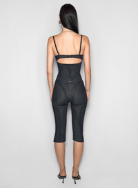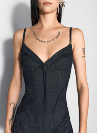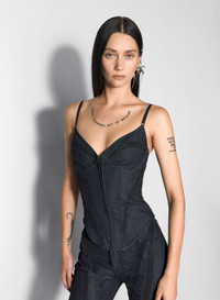 black mesh corseted raw denim top