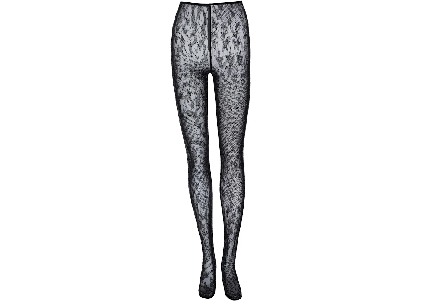 Mugler H&M Rhinestone-Embellished Mesh Tights Black