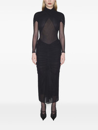 MUGLER Black Highlights - Black - High neck - Draped detailing - Long sleeves - Sheer panel - Gathered skirt Imported Composition Polyamide 100%