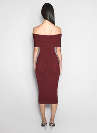 burgundy off-shoulder sculpting knit dress