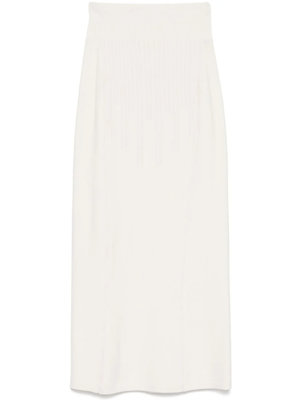 boning-detail midi skirt Highlights - White - Ribbed waistband - Raised seam detail Imported Composition Viscose 83%, Polyester 17% SIZE & FIT Model measurements Height 5 ft 11 in(1.8 m) Bust/Chest 32.67 in(83 cm) Hips 36.22 in(92 cm) Waist 24.4 in(62 cm) FittingInformation This midi-length skirt is intended to be worn high on the waist The elasticated waist allows for a comfortable fit Made with a midweight knit, this piece offers some stretch