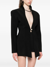 Sculptural jacket Highlights - Black - Front button fastening - Two side slit pockets - Full lining - Straight hem Imported Composition Outer: Viscose 78%, Virgin Wool 22% Lining: Cupro 100% SIZE & FIT Model measurements Height 5 ft 10 in(1.79 m) Bust/Chest 35.43 in(90 cm) Hips 35.03 in(89 cm) Waist 25.19 in(64 cm) FittingInformation Designed for a slim fit that sits just away from the body offering a close yet comfortable fit The internal shoulder pads offer a structured shape Made from a midweight non-stretch fabric