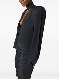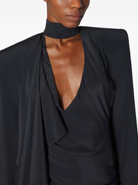 padded-shoulder high-neck mini dress Highlights - Black - High neck - Draped detailing - Padded shoulders - Long sleeves - Asymmetrical hem Imported Composition Fabric 100% Washing instructions Read Manufacturer Guidelines