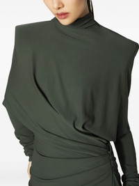 padded-shoulder midi dress Highlights - Dark green - High neck - Shoulder pads - Draped bodice - Side slit Imported Composition Fabric 100% Washing instructions Read Manufacturer Guidelines