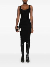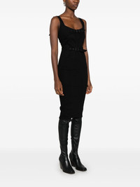 panelled denim midi dress Highlights - Black - Stretch-cotton - Denim - Panelled design - Front buckle detailing - Rear hook and zip fly fastening - Adjustable shoulder straps - Square neck - Below-knee length - Unlined - Straight hem Made in Italy Composition Cotton 98%, Elastane 2% SIZE & FIT Model measurements Height 5 ft 10 in(1.78 m) Bust/Chest 31.49 in(80 cm) Hips 37 in(94 cm) Waist 23.62 in(60 cm) FittingInformation Designed for a close fit throughout The adjustable shoulder straps allow for a preferred fit when worn Made from a midweight stretch fabric, this piece offers elasticity and flexibility when worn This piece fits small – take one size up