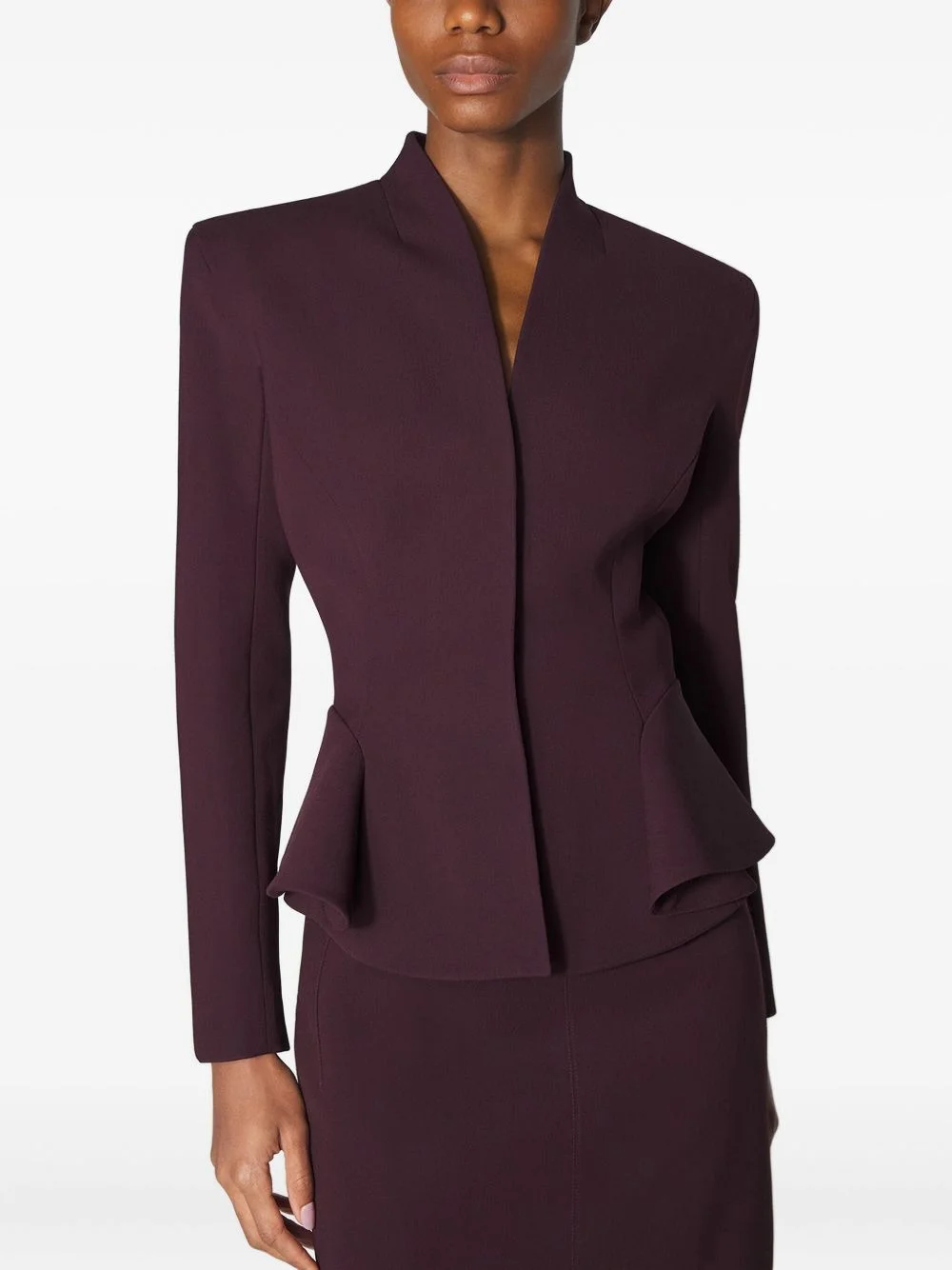peplum-waist fitted jacket Highlights - Red - Fitted waist - Peplum hem - Long sleeves - V-neck - Structured shoulders Imported Composition Outer: Viscose 78%, Virgin Wool 22% Lining: Cupro 100% Washing instructions Read Manufacturer Guidelines