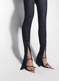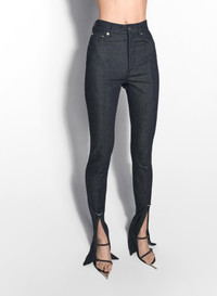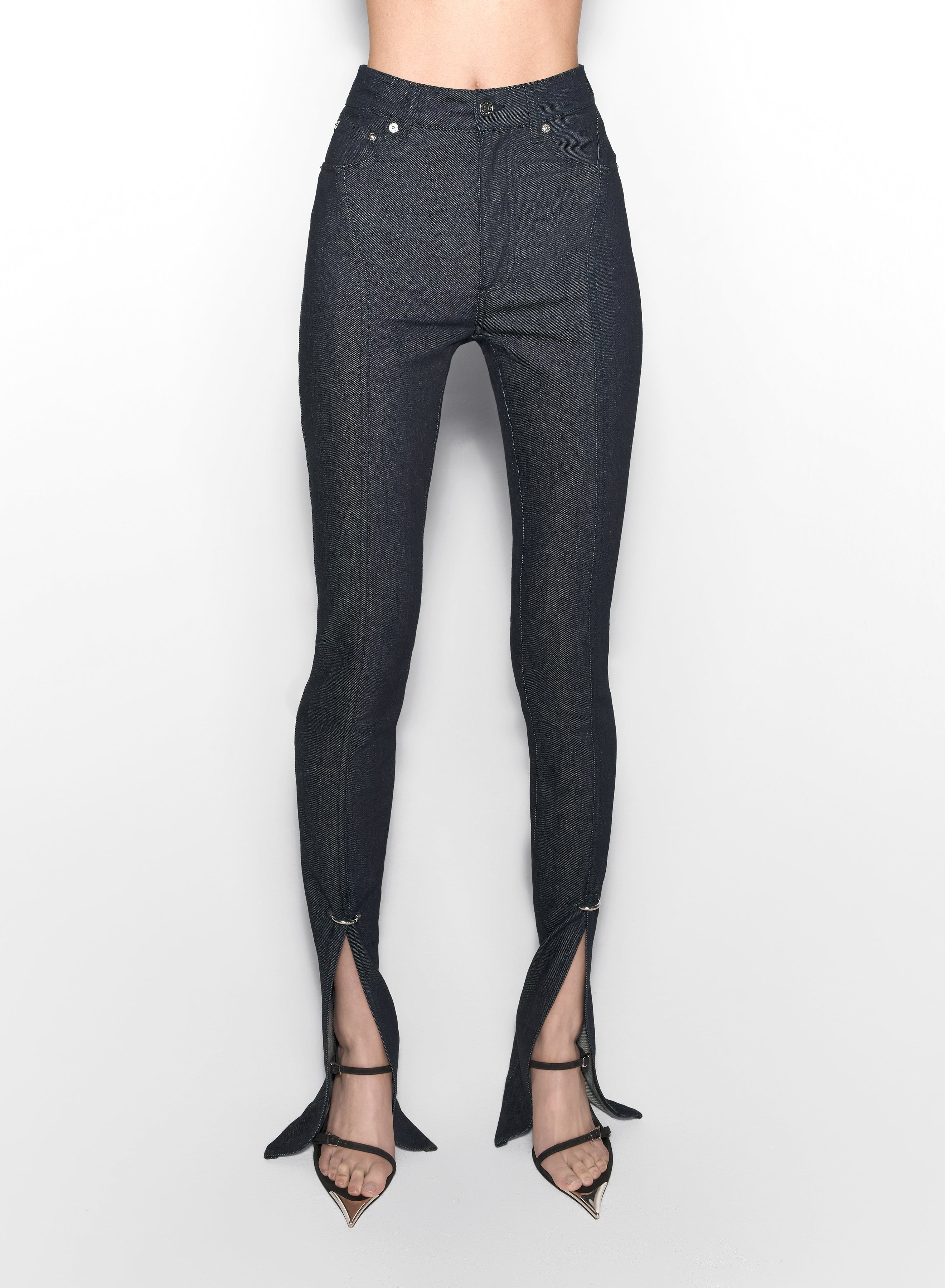 - High-waisted jeans - Skinny fit - Floor-length - Ankle slits withpierced buckle - front button - Mugler tag at back DETAILS 98% COTTON / 2% ELASTANE MADE IN ITALY STYLE: 25P6PA04962013