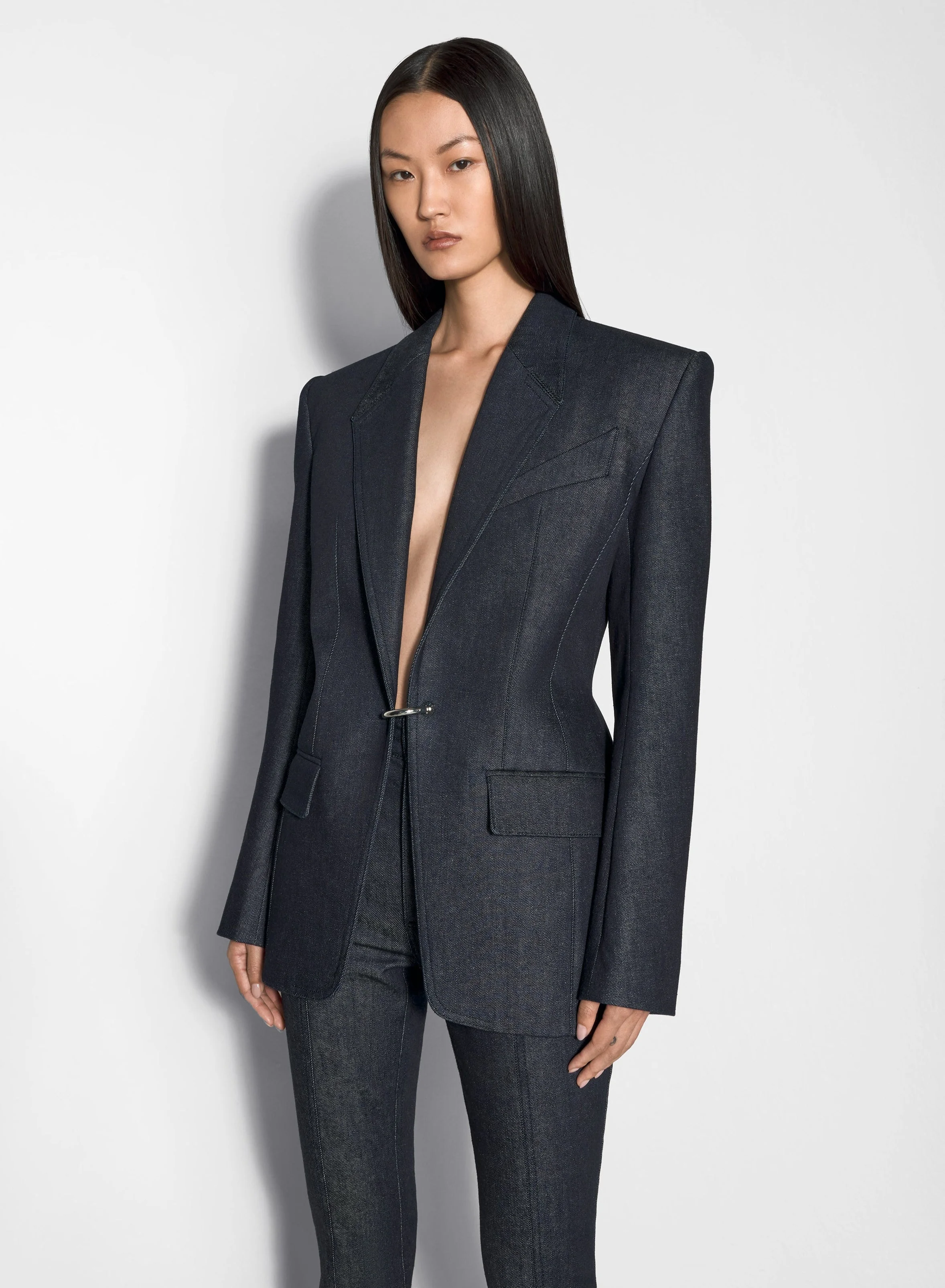- silverpierced buckle - shoulder pads - fitted cut - flap side pockets DETAILS MAIN FABRIC:98% COTTON 2% ELASTANE LINING:100% CUPRO MADE IN MORROCO STYLE: 25P1VE04182013