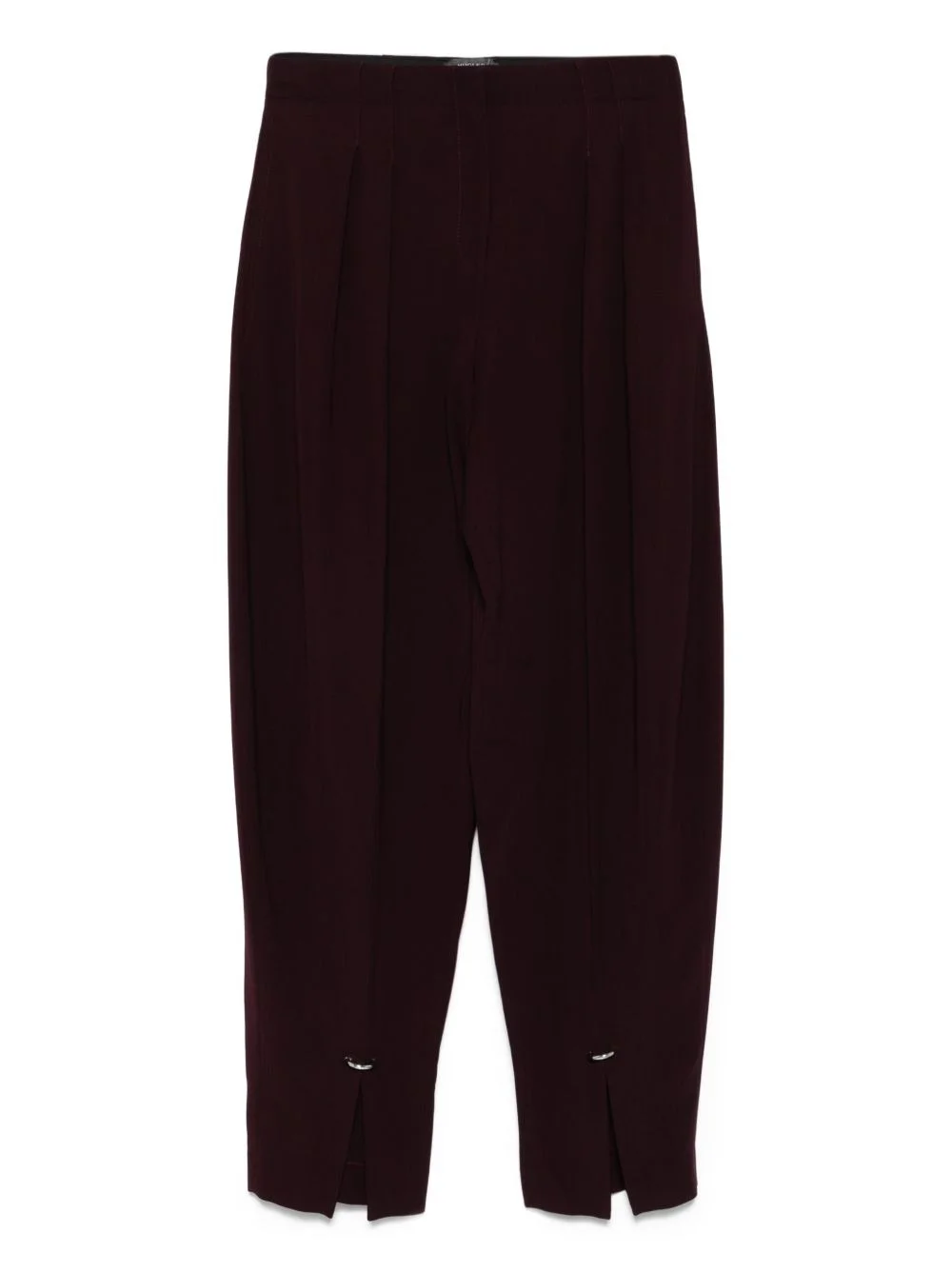 pleated split-hem trousers Highlights - Red - Pleated front - Split hem - Side pockets - Straight leg Imported Composition Outer: Viscose 78%, Virgin Wool 22% Lining: Cupro 100% SIZE & FIT Model measurements Height 5 ft 10 in(1.77 m) Bust/Chest 32.28 in(82 cm) Hips 35.03 in(89 cm) Waist 25.19 in(64 cm) Washing instructions Dry Clean Only