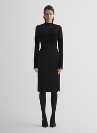- Inspired from the Cirque d’Hiver pret-a-porter collection fall/winter 1995-1996 - Fitted top in transparent chenille knit with black gradient stripes - Short turtleneck collar - Long fitted sleeves - Opaque bust line and hips - Invisible zipper in the back DETAILS MAIN FABRIC:74% VISCOSE 26% POLYAMIDE made in PORTUGAL style: COM2TO08351135