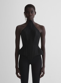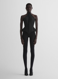 - From the Les Amazones pret-a-porter collection fall/winter 1996-1997 - Corset top in black fluid heavy wool - Rounded peaked neckline and hem - Hourglass waist with stitched boning - Lacing in the back - Fully lined DETAILS LINING:100% CUPRO MAIN FABRIC:78% VISCOSE 22% WOOL made in UKRAINE style: COM1CT0120196