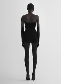 - From the Lingerie pret-a-porter collection fall/winter 1998-1999 - Fitted mini dress in black Japanese tailoring velvet - Twisted and structured bustier bust-line with cut-outs - Tone-on-tone zipper in the back - Fully lined DETAILS LINING:100% CUPRO MAIN FABRIC:78% SILK 22% POLYESTER SECOND FABRIC:54% RAYON 46% COTTON made in BULGARIA style: COM1RO17962020