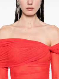 off-shoulder mini dress Highlights - Red - Concealed side zip fastening - Square neck Imported Composition Recycled Polyamide 94%, Elastane 6% SIZE & FIT Model measurements Height 5 ft 10 in(1.78 m) Bust/Chest 33.46 in(85 cm) Hips 36.22 in(92 cm) Waist 23.22 in(59 cm) FittingInformation Designed for a close fit throughout Made from a lightweight stretch fabric, this piece offers elasticity and flexibility when worn