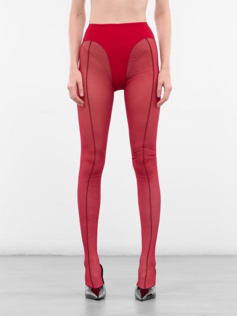 Featuring: • Slim fit and skinny leg • Sheer mesh construction • High-waisted • Opaque panty-line • Vertical seams in the front and back • Made in Bulgaria • Main Fabric: 78% Polyamide 22% Elastane | Second Fabric: 83% Polyamide 17% Elastane • Standard sizing Model is 5'9" wearing size S. Bust: 32" Waist: 25" Hips: 34"