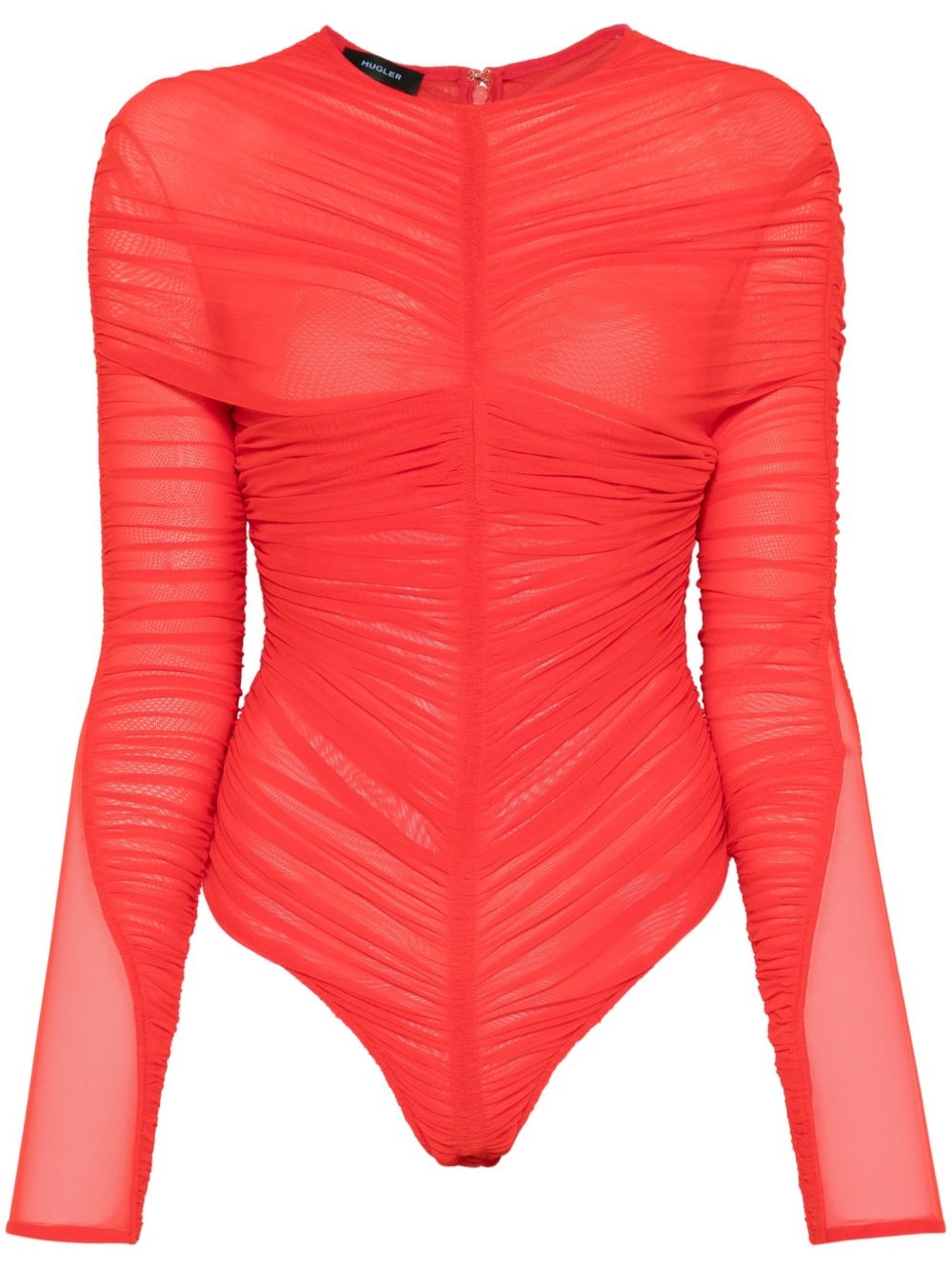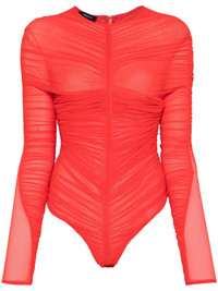 ruched bodysuit Highlights - Red - Concealed rear zip fastening - Snap-fit fastening - Just a reminder that this piece must be tried on over your own garments. Imported Composition Outer: Recycled Polyamide 94%, Elastane 6% Lining: Cotton 89%, Elastane 11% SIZE & FIT Model measurements Height 5 ft 10 in(1.78 m) Bust/Chest 33.46 in(85 cm) Hips 36.22 in(92 cm) Waist 23.22 in(59 cm) FittingInformation Designed for a close fit throughout Made from a lightweight stretch fabric, this piece offers elasticity and flexibility when worn